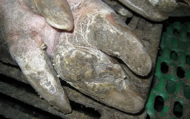 The consequence of many of these hoof defects found in sows is that they mainly causes pain and infection. The primary problem generally is extreme pressure to the hoof. A consequence of this is lesions of the heel horn. Extreme pressure can have various causes.